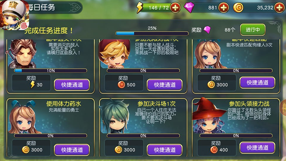 每日任务中也有部分任务会奖励金币,如完成副本快速匹配三次即可获得奖励3000金币。每天都来参与一遍,积少成多,也会是一笔稳定的收入呢。