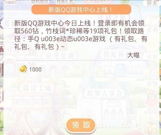 奇迹暖暖新版QQ游戏礼包在哪里领