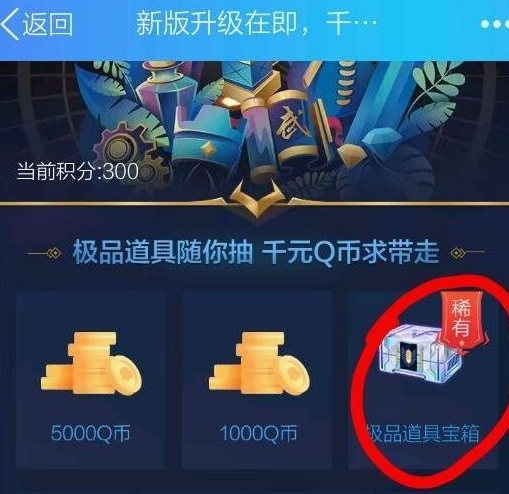 4、在积分兑换页面,点击抽奖,如果获得极品道具宝箱的话,就能获得560钻石,以及其他礼包