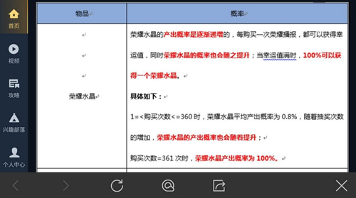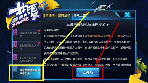 这个公告藏在游戏公告的最下面,一般不往下拉都看不到的。官方把这个公告放在这里的意思很明显,你们懂的。不过今天我手欠拉了一下就看到它的存在了,那么点击这个去完成按钮就可以看到所有的概率了。
