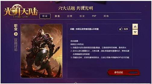 将邀请玩家作为主角,大家一起来讨论商定未来如何改进,项目组将仔细倾听大家的意见和建议,将勇士们的想法融入光明大陆的未来。