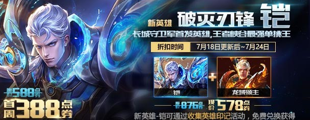 长城守卫军首发英雄-铠免费兑换开启,集齐英雄印记,即可在页面上领取【铠的召唤钥匙】,版本更新后可在游戏内活动面板免费兑换破灭刃锋-铠;