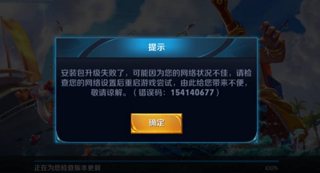 王者荣耀7月18日更新提示错误码154140677怎么回事