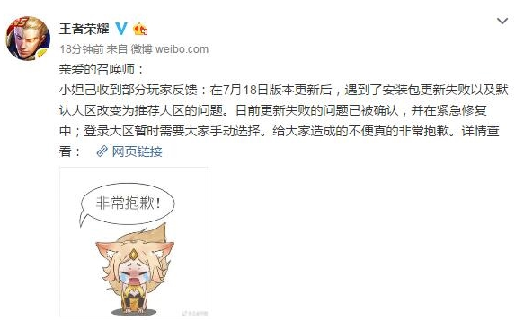 以下是“7月18日版本更新后登录异常问题公告说明”