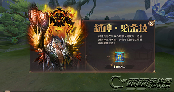 在手游中,当天命者到达10级时,就可以开启弑神任务,完成弑神任务获得弑神之力,开启弑神系统,获得更强有力的作战伙伴。届时,还可以通过打开游戏界面中的技能面板,察看自已的弑神,而且每个职业都有专属的弑神。