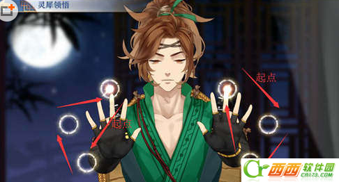 开始领悟灵犀之后,可以发现,左右两只手会有一个光点流动,仔细观察光点流动的路径,将路线了然于心。使用两只手的手指同时按照光点流动的方向走,即可完成灵犀领悟哦~