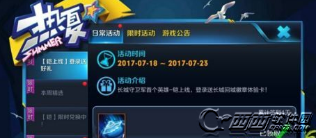 玩家在7月18日-7月23日期间登录,就可领取一个有限期3天的长城回城徽章。