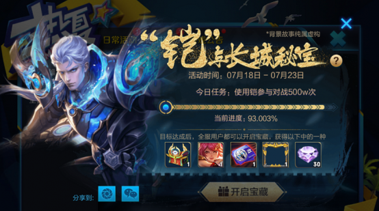 活动内容:目标达成后,全服用户都可以开启宝藏,获得改名卡或者其他奖励