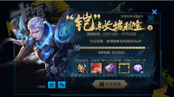 活动内容:目标达成后,全服用户都可以开启宝藏,获得花木兰或者其他奖励