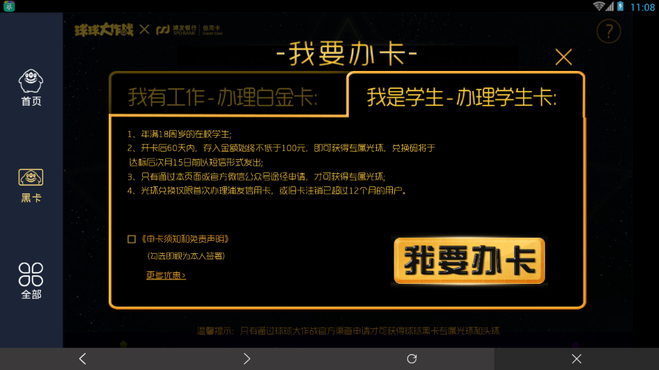 球球大作战球球黑卡怎么办理