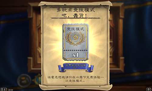 2.每周打完3场竞技场就送1包冰封王座的骑士卡包,一共3包;