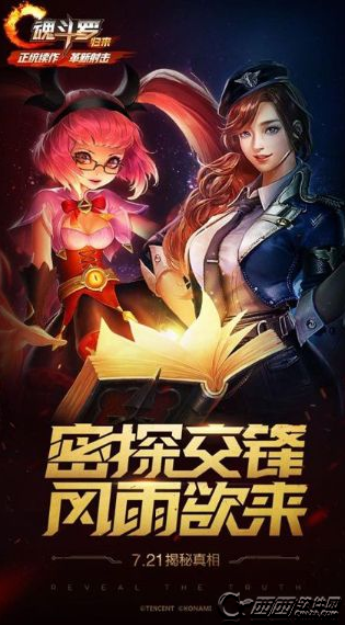 在暑期曝光的第二张《魂斗罗:归来》悬念海报中,《魂斗罗:归来》当家花旦 “缇娜”与《王者荣耀》人气萝莉法师“安琪拉”映入眼帘。从文案“密探交锋,风雨欲来”中我们可以得知,这两位美眉是作为两款游戏的密探深夜碰头,为“大事件”的“风雨欲来”提前谋划。底部也同样提醒玩家,7月21日,揭秘真相!
