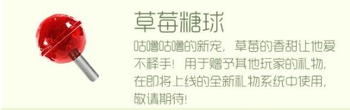 咕噜咕噜的新宠,草莓的香甜让他爱不释手!用于赠予其他玩家的礼物,在即将上线的全新礼物系统中使用,敬请期待!