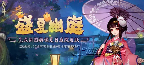 阴阳师庭院皮肤盛夏幽庭是游戏最新的夏日皮肤,相信很多的玩家都非常的期待,这款皮肤在7月28日正式上线,获取方法和方式都比较特别,下面西西就为大家带来阴阳师庭院皮肤盛夏幽庭拼图获取方法介绍,希望大家能够喜欢。