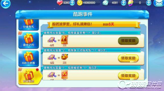 2、2个极品兑换物--月光宝盒=多人对战礼包(PVP20钻入场券*1+能量药剂*1),限3次
