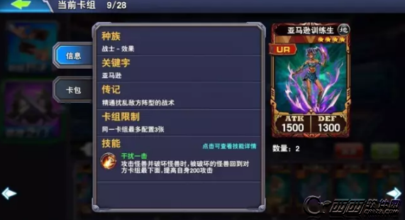 亚马逊贤者:破坏场上的魔陷卡的效果很诱人,可惜攻击不足,常常发挥不出作用,偶尔能够破坏对方巨大化等卡,但是稳定性不足,非优先级卡片。