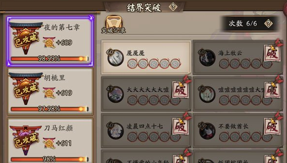 3、增加了阴阳寮突破记录,方便寮友查看突破信息。、