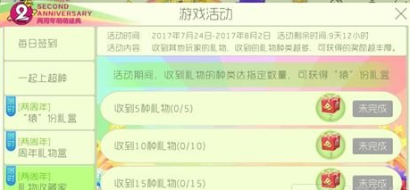 活动内容:收到其他玩家的礼物,收到的礼物种类越多,可获得的奖励越丰厚。