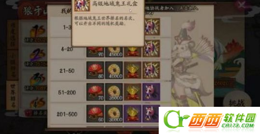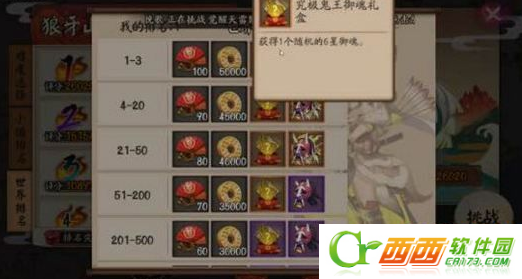 排名奖励:金币、究极鬼王御魂礼盒、高级地域鬼王礼盒等
