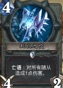 战士职业白卡,武器,4费,攻击/耐久:2/2。战吼,亡语对所有随从造成1点伤害。