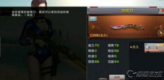 蝴蝶刀的属性已经曝光,拥有非常不错的威力和便携属性,而且范围和穿透比一般匕首高了不少。