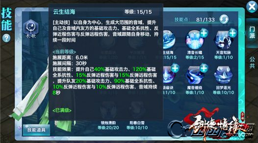 在技能<云生结海>可以增加自身的反弹属性,并且获取同样的资源情况下长歌的双反弹属性是可以比其他门派多15%左右。