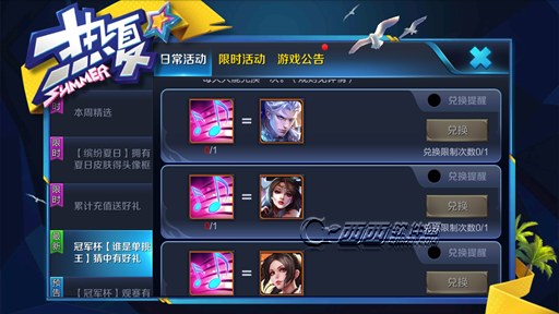 1、冠军杯开赛音符可在【谁是单挑王】中兑换你心中的单挑王的英雄信物,每个英雄的信物每天只能被兑换一次。
