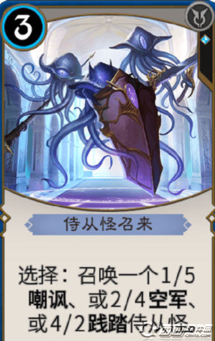 侍从怪招来:选择:召唤一个1/5嘲讽、或2/4空军、或4/2践踏侍从怪。