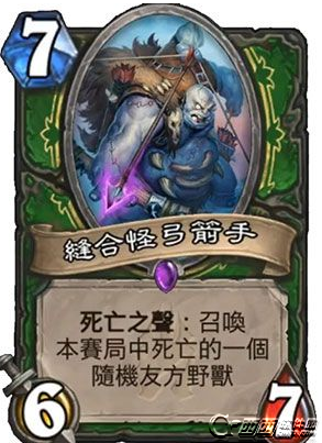炉石传说冰封王座的骑士 猎人新传说卡——缝合怪弓箭手(台服翻译),7费6-7,亡语可召唤一只本局比赛死掉的友方随机野兽。