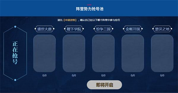 这种基本是发生在手机端,玩家只能看到阵营势力抢号池的大概消息,但是没有任何点击抢号的按钮,网页版至少还有个“即将开启”,这里什么也没。