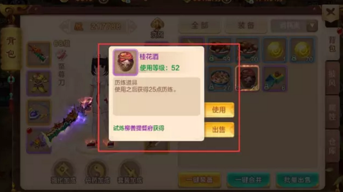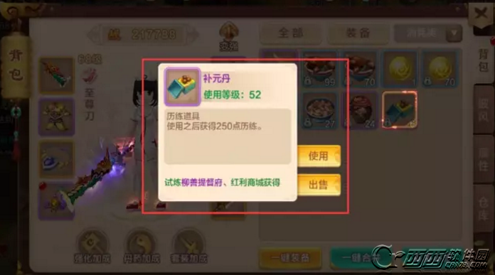 可以通过历练道具补元丹(每个使用之后获得250点历练,在试炼柳善提督府和红利商城中获得)和桂花酒(使用之后获得25点历练,在试炼柳善提督府中获得)来获得大量历练。