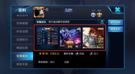召唤师们可以在个人资料—交友名片中查看自己或他人的游戏相册。点击游戏相册中的图片可查看大图哟~~