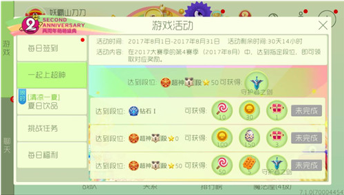 活动内容:在2017大赛季的第4季(2017年8月)中,达到指定段位,即可获取对应奖励。