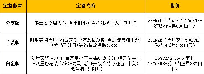 宝鉴中包含的龙马飞升丹有两个功能:飞升和化形。如果少侠已经拥有召唤兽龙马,即可通过使用龙马飞升丹使其获得属性提升和样貌转换的效果;如果少侠还未获得召唤兽龙马,即可通过使用龙马飞升丹兑换一只龙马!集珍稀、华丽、精致于一体,一次购买,永久拥有——8月10日限时开售,你,准备好了吗?