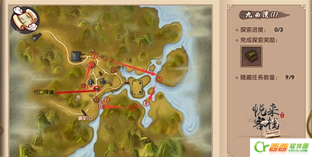点开区域地图,右侧即可显示当前的隐藏任务进行状态。九曲湾一共有九个隐藏任务,接下来,就请小仙一一道来。
