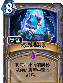 炉石传说冰封王座的骑士 法师新卡——冰川秘典(暂译),8费法术:将每种不同的奥秘从你的牌库置入战场(法师版的佛祖)