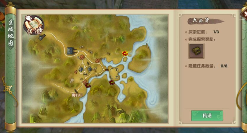 寻仙手游九曲湾探索点在哪里