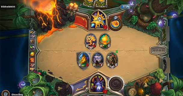 卡组由元素/恐龙+一些职业法术组成,英雄是随机的,所以有时候也会出现骚套路。