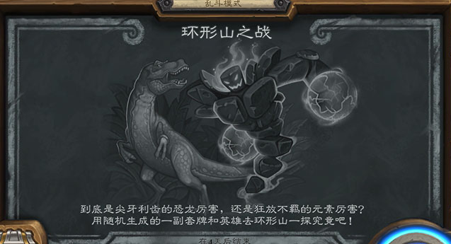 炉石传说环形山之战怎么玩,乱斗环形山之战规则是什么,炉石传说环形山之战是本周112期乱斗,整体卡组元素对战恐龙,新旧版本之战,随机职业随机卡组分配,西西带来炉石传说环形山之战乱斗玩法规则介绍,希望对大家有所帮助。
