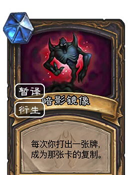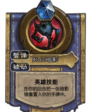 英雄技能为被动,在你的回合把一张暗影镜像置入你的手牌中。暗影镜像,每次你打出一张卡,成为那张卡的复制。(费用效果与原卡相同)