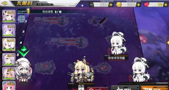 在镜面海域中,玩家将在7*7的地图上面对十轮敌人的挑战,而这些敌人不再是单纯的电脑阵容,而替换成了其他玩家的舰队!但是和通常演习不同的是,战斗结束后并不会恢复耐久度,玩家这次可以手动操控舰队了,而敌人也会获得额外加成,在战斗开始一段时间后敌人会获得炮击、装填等属性的加成。而且越往后敌人的等级实力都会更强,大约在第七战后敌人基本上都是100级以上的大佬了,战斗也会变得更加艰难!