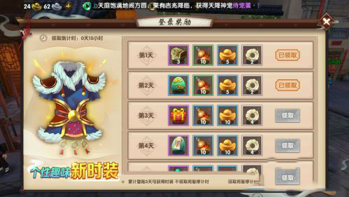 1.登录奖励:连续登录三天就可以获得一套限时时装。