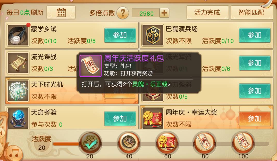同时少侠通过完成日常任务达到固定活跃度,就能获得一定数量的“灵魄·乐正绫”,集齐30个灵魄就能合成获得伙伴·乐正绫啦!