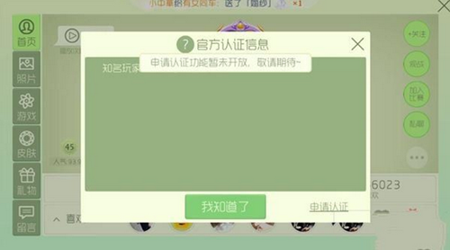 目前申请官方认证功能暂时还没有开放哦,已经加V的玩家可能是之前游戏中很知名的大神,官方特别加的哟,你如果要加V的话,还是耐心等候一段时间吧。