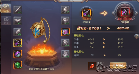3.狂化后的装备,可通过进阶变为更高阶的狂化装备,只需补足相应的狂化石;
