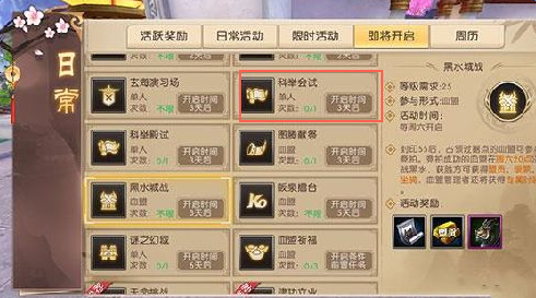 1、每天可在日常活动中参与科举乡试,界面栏中回答20道题目;每答对10题,获得1个排除令;每答对20题,获得1个秒答令;