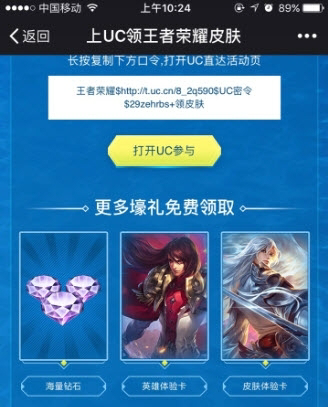 上uc领王者荣耀永久皮肤活动官网地址:点此进入