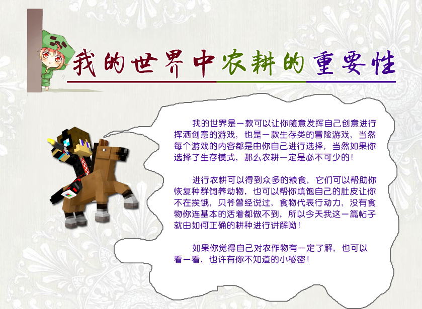 我的世界农业怎么种植,我的世界国服版正式在中国上市了,今天西西就给大家详细的讲解我的世界如何进行耕种,种子如何获取,以及怎么收获更多农产品。更有自动收割机的简易搭建方式。接下来就跟西西一起来看看吧!