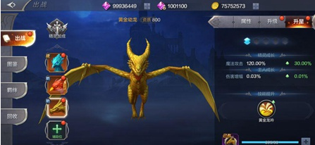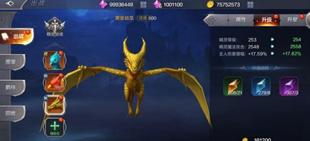 在出战界面,选中相应精灵,点击右侧的“升级”按钮,就可以对精灵进行升级操作。升级需要消耗一定数量和品质的“自然之灵”,升级后将提升精灵的“自身属性”以及“天赋加成属性”。