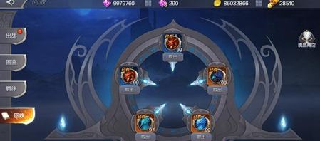 点击“回收”按钮,进入精灵碎片回收界面。在回收界面,可以将精灵碎片回收为“精灵魂晶”。使用“精灵魂晶”可以在魂晶商店中购买精灵碎片